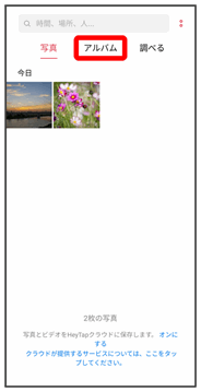 • アルバム調べるをタップしたときは、続けて表示するフォルダをタップします。