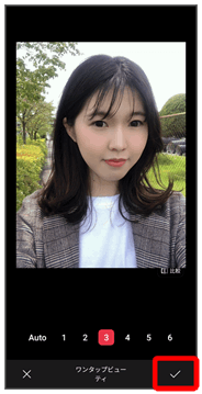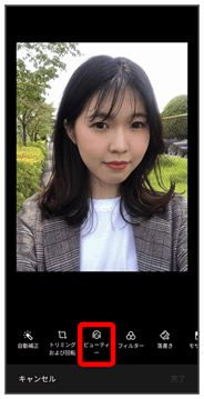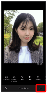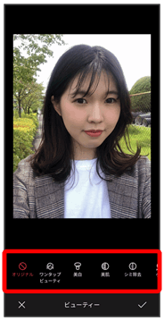 人の顔を検知して、小顔、美肌などの美顔加工をすることができます。