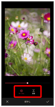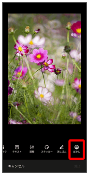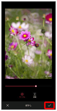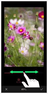 バーを左右にドラッグして、ぼかしの強弱を調節