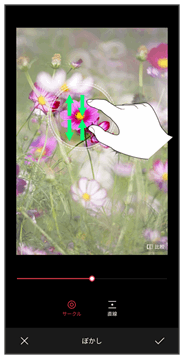 画面をドラッグ/ピンチして、ぼかしの位置や範囲を調節