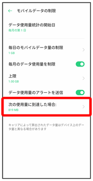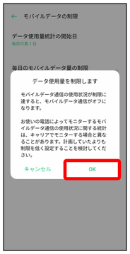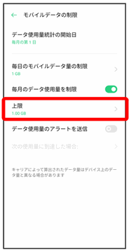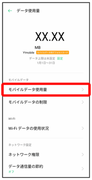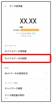 モバイルデータ通信の使用量を確認したり、使用を制限することができます。