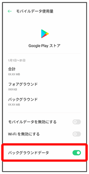| バックグラウンドデータの通信 | バックグラウンドデータの通信を制限します。詳しくは、「バックグラウンドのモバイルデータ通信を制限する」を参照してください。 | |