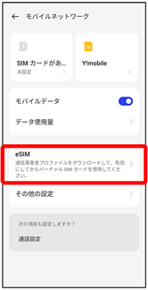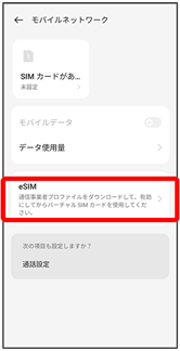 eSIMダウンロード完了後は端末を再起動し、「モバイルネットワーク」画面で、eSIMの電話番号が有効になっていることを確認してください。