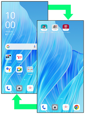 ホーム画面シートが複数あるときは、ホーム画面を左右にフリック/スワイプすると、ホーム画面シートを切り替えることができます。