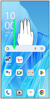 | 下にフリック/スワイプすると、通知バーを表示します。2本指で下にフリック/スワイプすると、コントロールセンターを表示します。 | ||
