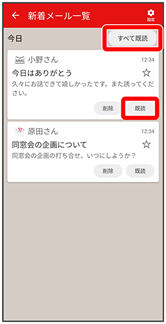 - すべて既読をタップすると、タップした日のすべてのメールが既読になります。