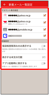 - 新着メール一覧設定画面でアプリ起動時に表示する