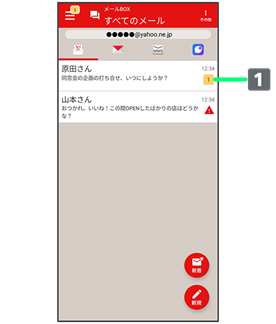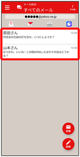 - 相手を限定せずに、迷惑メール・ゴミ箱以外の受信したすべてのメールを確認するときは、すべてのメールをタップします。