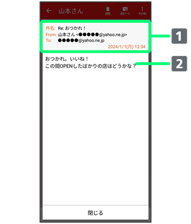 - 指定ドメインに設定した相手とのメールを確認するときは、指定ドメインをタップします。