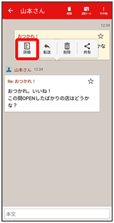 - メール送受信画面で、宛先グループ(相手)名をタップ