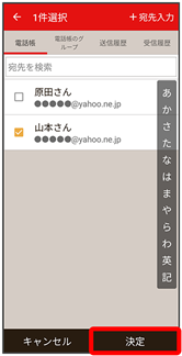 - 宛先入力をタップすると、宛先を直接入力できます。また、入力した宛先を電話帳に登録することもできます。