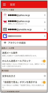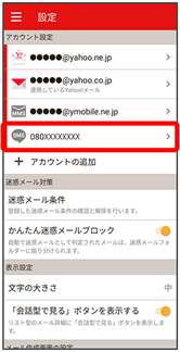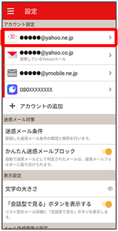 - Y!mobile メール設定画面で、Y!mobile メールのアカウントをタップ