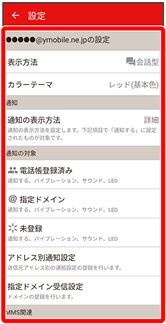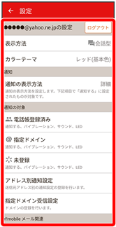 | 指定ドメイン | 指定ドメインに登録した相手からメールを受信したときの通知方法を設定します。 | |