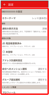 | 電話帳登録済み | 電話帳に登録済みの相手からメールを受信したときの通知方法を設定します。 | |