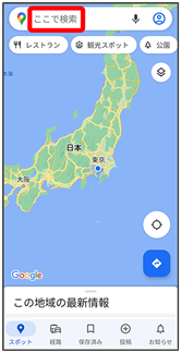 - 住所や都市、施設名などを入力