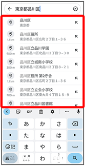 - 選択候補から住所や都市、施設名などをタップ
