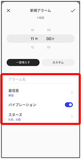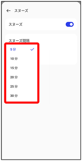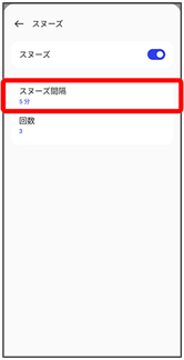 - X分間スヌーズ(Xは数字)をタップするとスヌーズが設定されます。