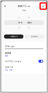 アラーム設定時刻になると、アラーム音や振動でお知らせします。