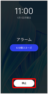 - 画面ロックを解除しているときは、アラーム通知のスヌーズ/停止をタップします。