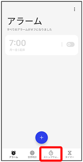 アラームや世界時計、ストップウォッチ、タイマーを利用できます。