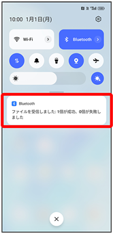 - 受信完了後、ステータスバーを下にフリック/スワイプ