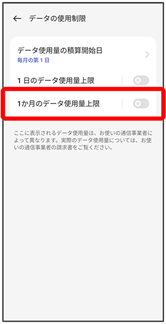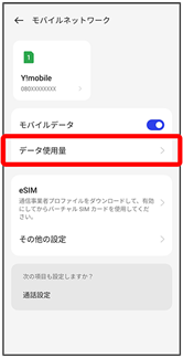 モバイルデータ通信の使用量を確認したり、使用を制限することができます。
