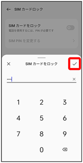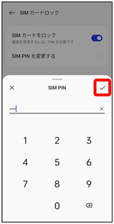 PINコードを有効にすることで、SIMカードを本機に取り付けた状態/eSIMが有効な状態で電源を入れたとき、PINコードを入力する画面を表示するように設定できます。