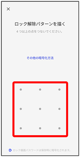- パターンを指でなぞって画面ロックを解除するように設定する