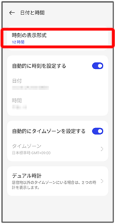- 12時間表示に切り替える場合は、12 時間(午後 1 時)をタップします。