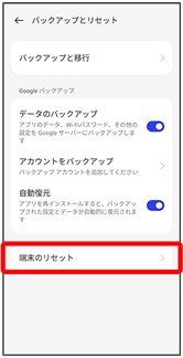 - バックアップとリセット