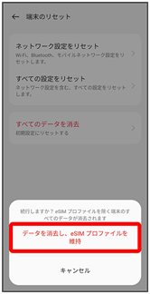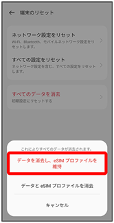 - データを消去し、eSIMプロファイルを維持