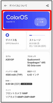 ColorOS 13(Android 13)からColorOS 14(Android 14)へのバージョンアップ手順を説明します。