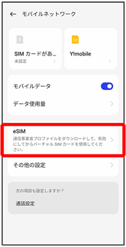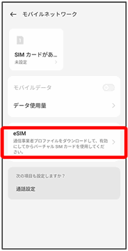 eSIMダウンロード完了後は端末を再起動し、「モバイルネットワーク」画面で、eSIMの電話番号が有効になっていることを確認してください。