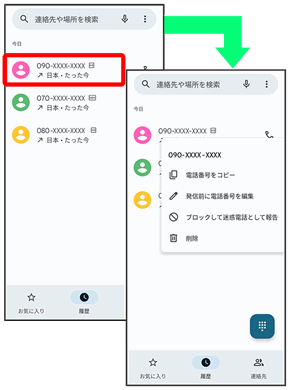 • ↓画面をロングタッチすると利用できる設定や項目が表示される画面もあります。