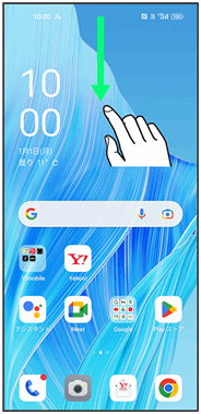 ステータスバーを下にフリック/スワイプすると、通知バーを開くことができます。通知バーでは、通知アイコンとその内容を確認できます。