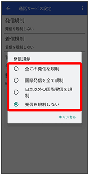 | 発信規制・着信規制 | 電話発着信を状況に合わせて制限できます。 |