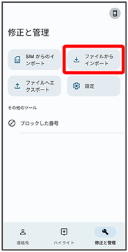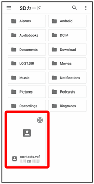 SDカードに保存(バックアップ)した連絡先データを読み込み(インポート)できます。