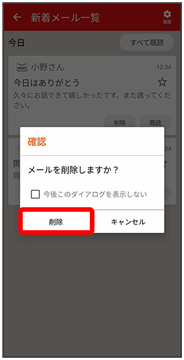 • ↓新着メール一覧画面で、削除する新着メールの削除