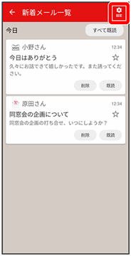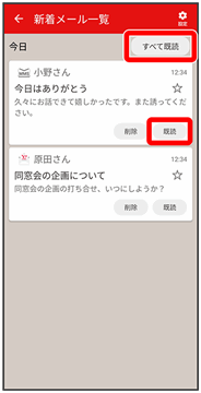 • すべて既読をタップすると、タップした日のすべてのメールが既読になります。
