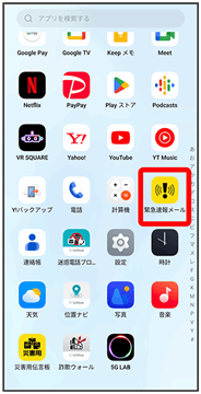 緊急速報メール受信メッセージ一覧画面が表示されます。
