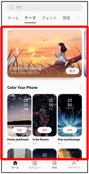 テーマストアでは、テーマやフォント、壁紙をダウンロードして設定することができます。ご利用にはHeyTap アカウントへのサインインが必要です。