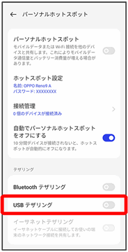 イーサネットテザリングが有効になります。