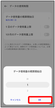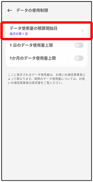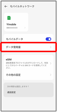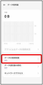 モバイルデータ通信の使用量を確認したり、使用を制限することができます。