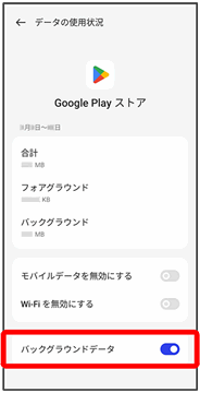 | バックグラウンドデータの通信 | バックグラウンドデータの通信を制限します。詳しくは、「バックグラウンドのモバイルデータ通信を制限する」を参照してください。 | |