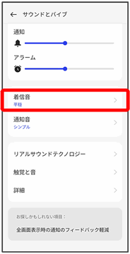 | 触覚と音 | ダイヤルパッドを操作したり、タッチ操作をしたりなどのときに音を鳴らすかどうかを設定します。 | |