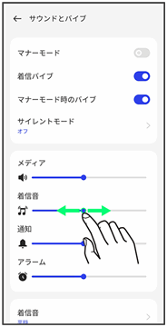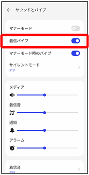 | マナーモード時のバイブ | マナーモードを有効にしたときにバイブレーションを動作させるかどうかを設定します。 | |