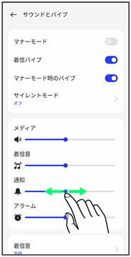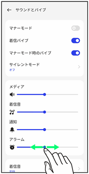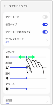 | メディア | 音楽や動画などの音量を設定します。 | |