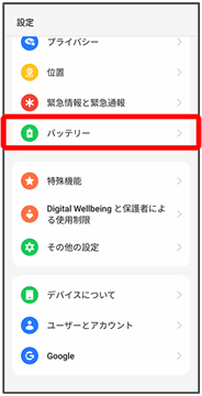 | その他の設定 | より多くの電力を使用する高パフォーマンスモードを設定したり、バッテリーを消耗するアプリを自動で最適化したりするなどを設定できます。 |