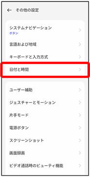 | 日付と時間 | 日付や時刻に関する設定ができます。 | |