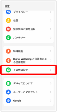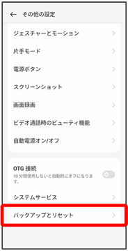 | OTG 接続 | USB変換ケーブルなどを使用して端末同士の充電やデータ転送ができる「USB On-The-Go」の機能を利用するかどうかを設定します。 | |